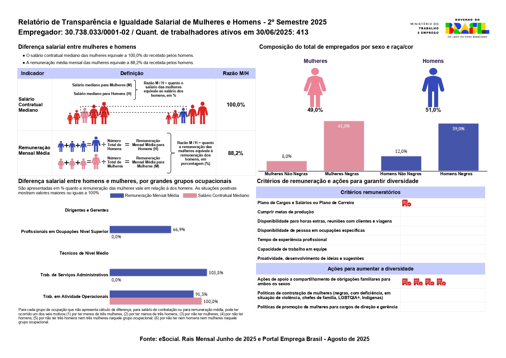 A CODEG reafirma seu compromisso com a justiça e a valorização de seus colaboradores, tornando público o Relatório de Transparência Salarial em atendimento à Lei Federal nº 14.611/2023 – Lei de Igualdade Salarial. Com essa publicação, a empresa demonstra de forma clara sua transparência e o cumprimento da legislação que assegura critérios remuneratórios iguais entre mulheres e homens em funções de igual valor ou na mesma atividade.